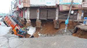 दिल्ली के नजफगढ़ इलाके में मेट्रो निर्माण कार्य चल रहा है। मेट्रो की लापरवाही से खैरा मोड़ नजफगढ़ पर बने सेनिटेशन शोरूम के नीचे की सारी मिट्टी बहने से शोरूम की बिल्डिंग गिर गई।